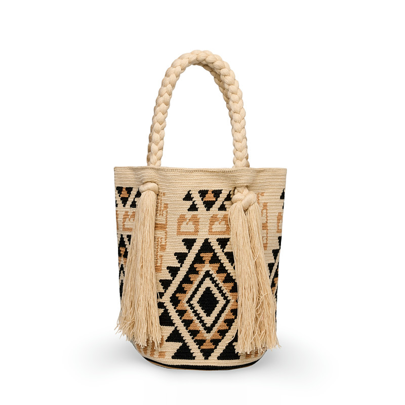 Prodotto unico e originale, progettato e disegnato in italia da Genoveva Salazar. Le piccole imperfezioni fanno parte del suo processo artigianale, rendendolo unico e diverso dagli altri. Prodotto interamente fatto a mano dalle nostre artigiane Wayuu in Colombia. Prodotto D.O.C (Denominazione d’origine Controllata)